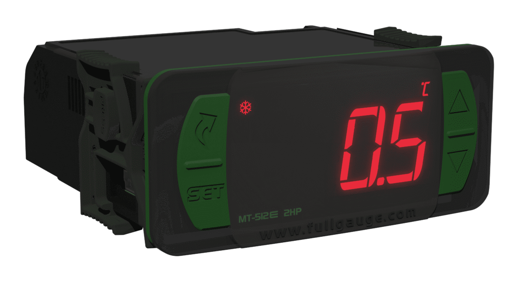 The natural defrost can be forced or performed through an off refrigeration cycle. It also features a configurable digital filter, which has the aim of simulating an increase of mass in the environment sensor, thus increasing its response time, that is, the sensor response becomes slower. In addition to those features, the MT-512E 2HP has tamper-proof function that blocks the keypad preventing unauthorized users changing its settings, and a control function shutdown that deactivates the controlling outputs turning the instrument into a digital temperature indicator.