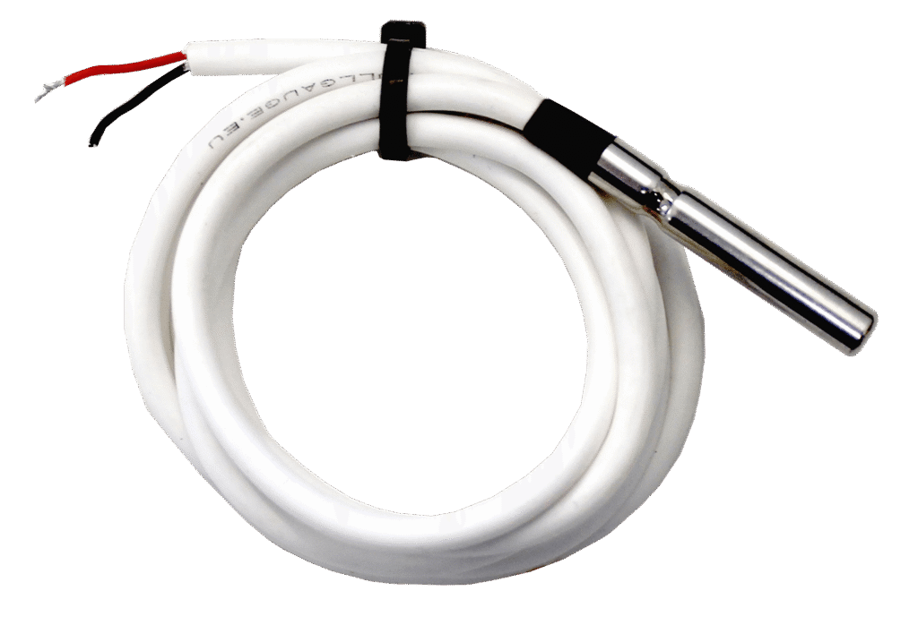 Temperature sensor whit silicone cable and covered with a stainless steel shell. It operates in temperatures from -50 to 200°C / -58 to 392°F.