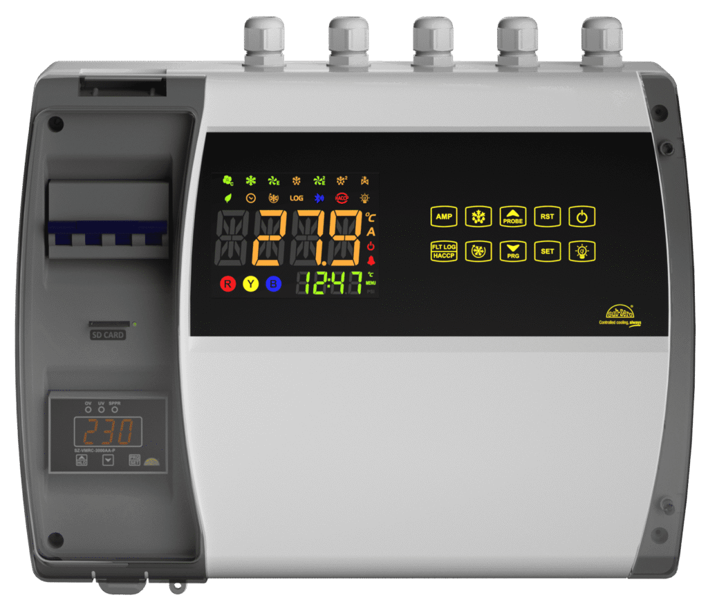SD Card: For Downloading logged data & fault from flash memory RTC: Real Time Clock for Defrost, Energy saving, Data logging & Display in HH:MM |